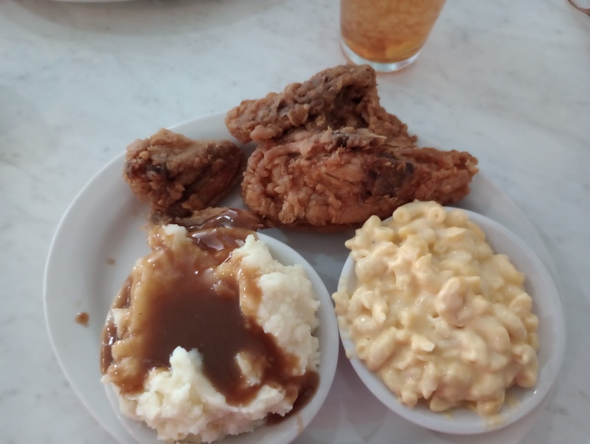 Loved this place. Old time diner. Service was great food was great atmosphere was great. I had the fried pork chops. They were large and plenty I had turnip greens, cabbage, and sweet corn pudding. My wife had southern fried chicken, yams, Black eyed peas.I had turnip greens. And then banana pudding would highly recommend this place.